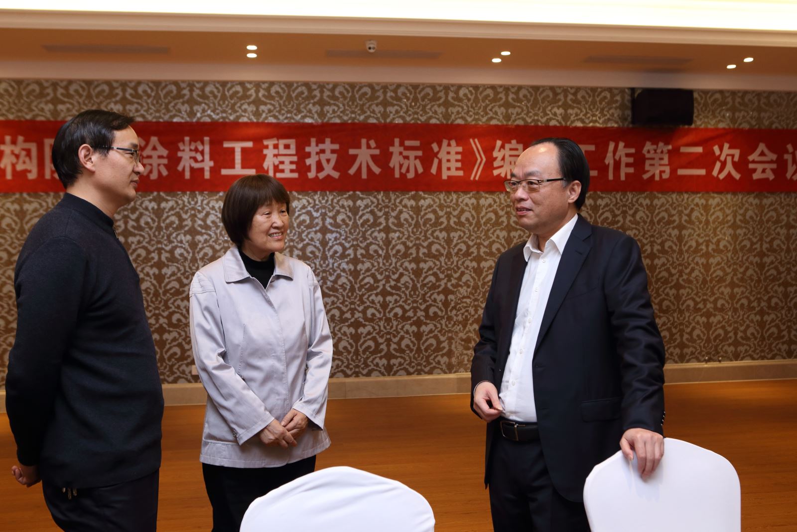 集團公司涂料生產副總工程師陳建剛與蘆天站長討論標準初稿