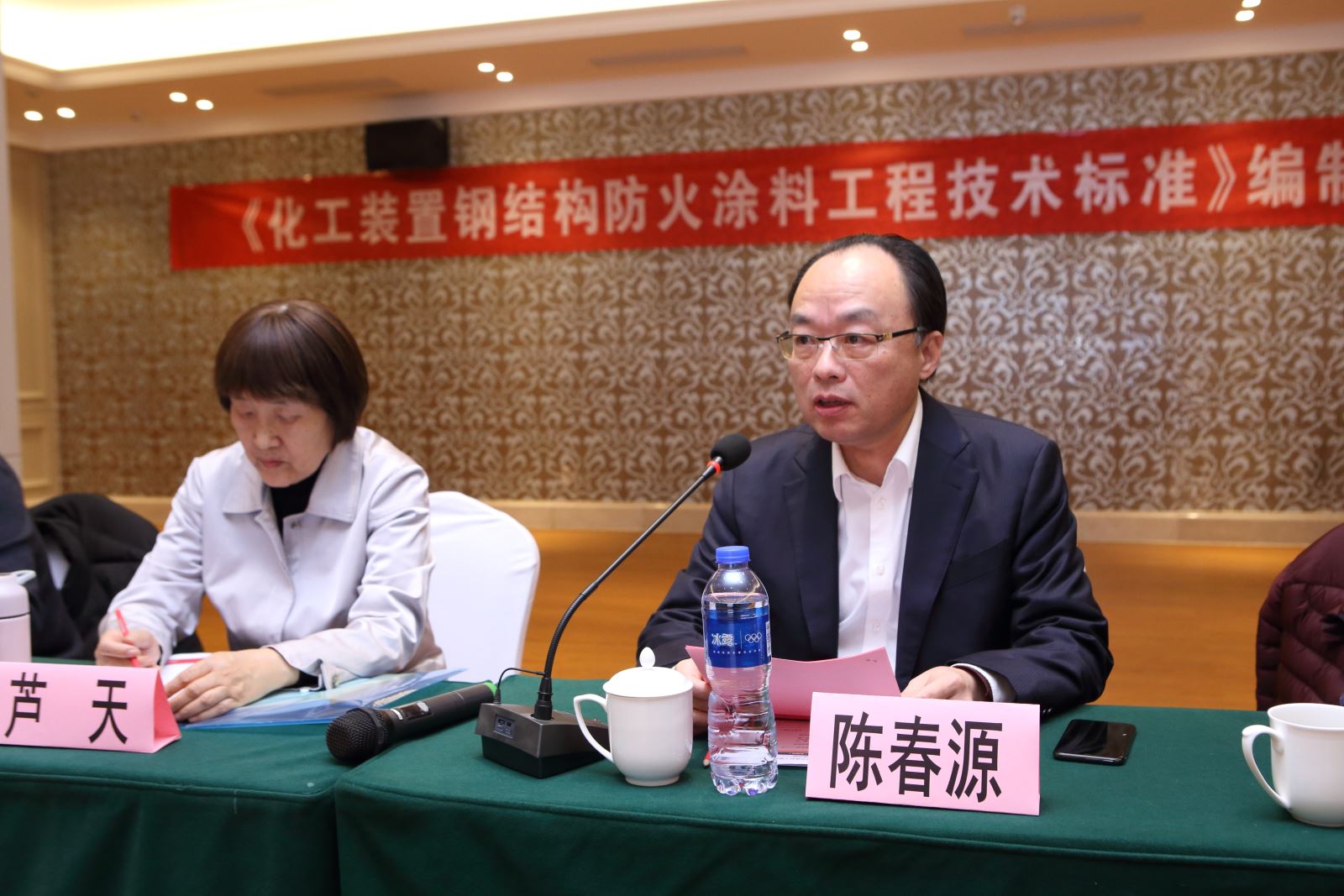 兩天的會議由全國化工施工標準化管理中心站站長、團體標準編制組組長蘆天主持,在第一天會議上,她嚴謹地提出了標準初稿討論的具體要求和編制中應注意的事項。隨后,集團公司董事長總經理陳春源代表本次會議承辦方致辭,他向與會領導和專家簡要介紹了我們蘭陵的基本情況,并表示非常希望通過這次會議,能夠和“中國石油和化工勘察設計協會”及“全國化工施工標準化管理中心站”建立長期良好的溝通、交流和互動機制,以便更好地深耕鋼結構防火涂裝保護這一重大板塊市場,提供更加先進的產品和優質的服務,從而進一步推動我國防火涂料工程技術的進步,為崇高的防火保護事業作出新的更大貢獻。會上,中國五環工程有限公司陳京副組長、中國化學工程第三建設有限公司展慶剛副組長、浙江美陽國際工程有限公司肖鵬副組長代表主編單位相繼發言。